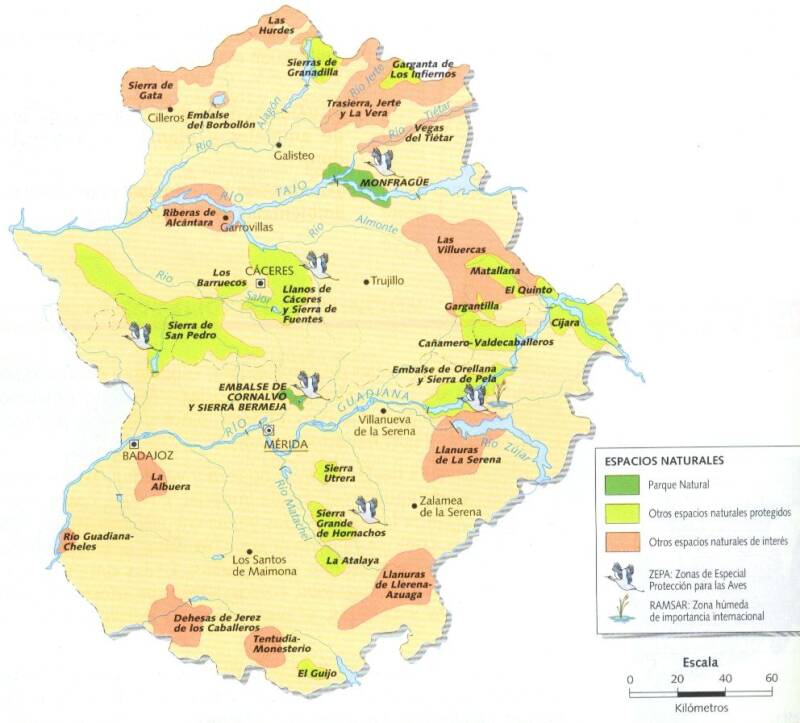 Het gebied is verdeeld over de twee provincies Cáceres en Badajoz.